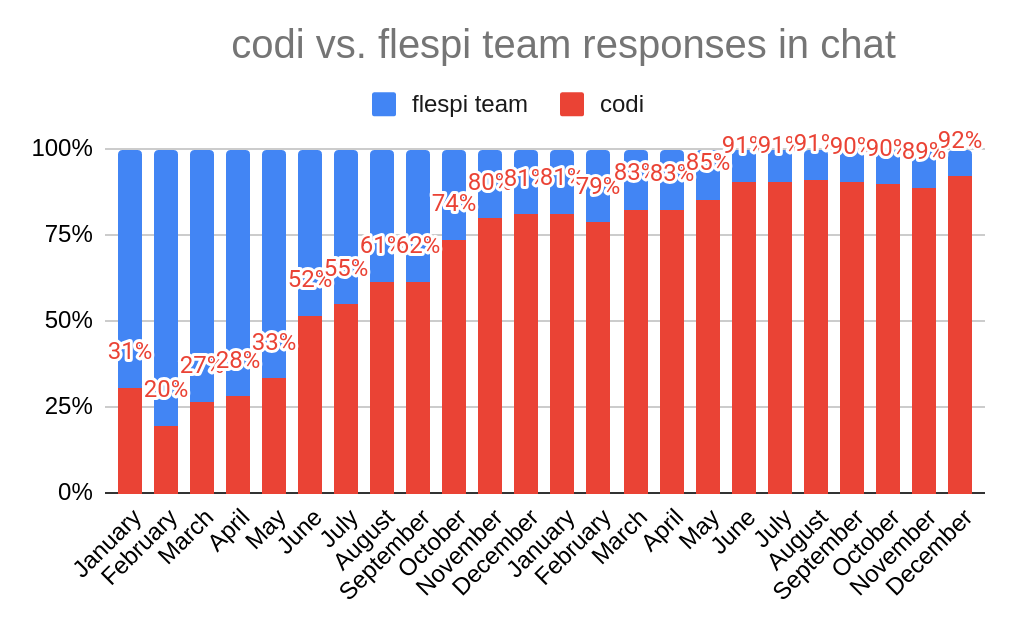To be honest, I should also mention the third most liked article – it was an ordinary February 2025 changelog. I’m not entirely sure what exactly drove the engagement there – the note about the U.S. losing its position as a reliable ally or some technical details around codi. But both topics have evolved significantly since February and have now stabilized at some level. I won’t touch on the U.S. topic today, but as for codi – it has grown and settled at handling around 90% of our support communication: