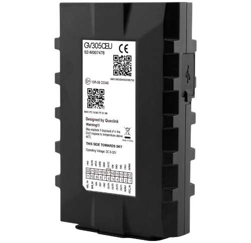 Queclink GV305CEU is a versatile LTE vehicle tracker with BLE 5.2 support, enabling remote monitoring and control. It features driver ID via 1-wire for unauthorized fleet vehicle detection, expandability with accessories like BLE beacons and temperature sensors. RS232 and RS485 ports facilitate additional functions such as fuel monitoring. The device has an internal GNSS antenna supporting GPS, Glonass, Galileo, Beidou. It also offers multiple interface options, alarms for geo-fencing, towing, driving behavior, crash detection, and OTA controls.