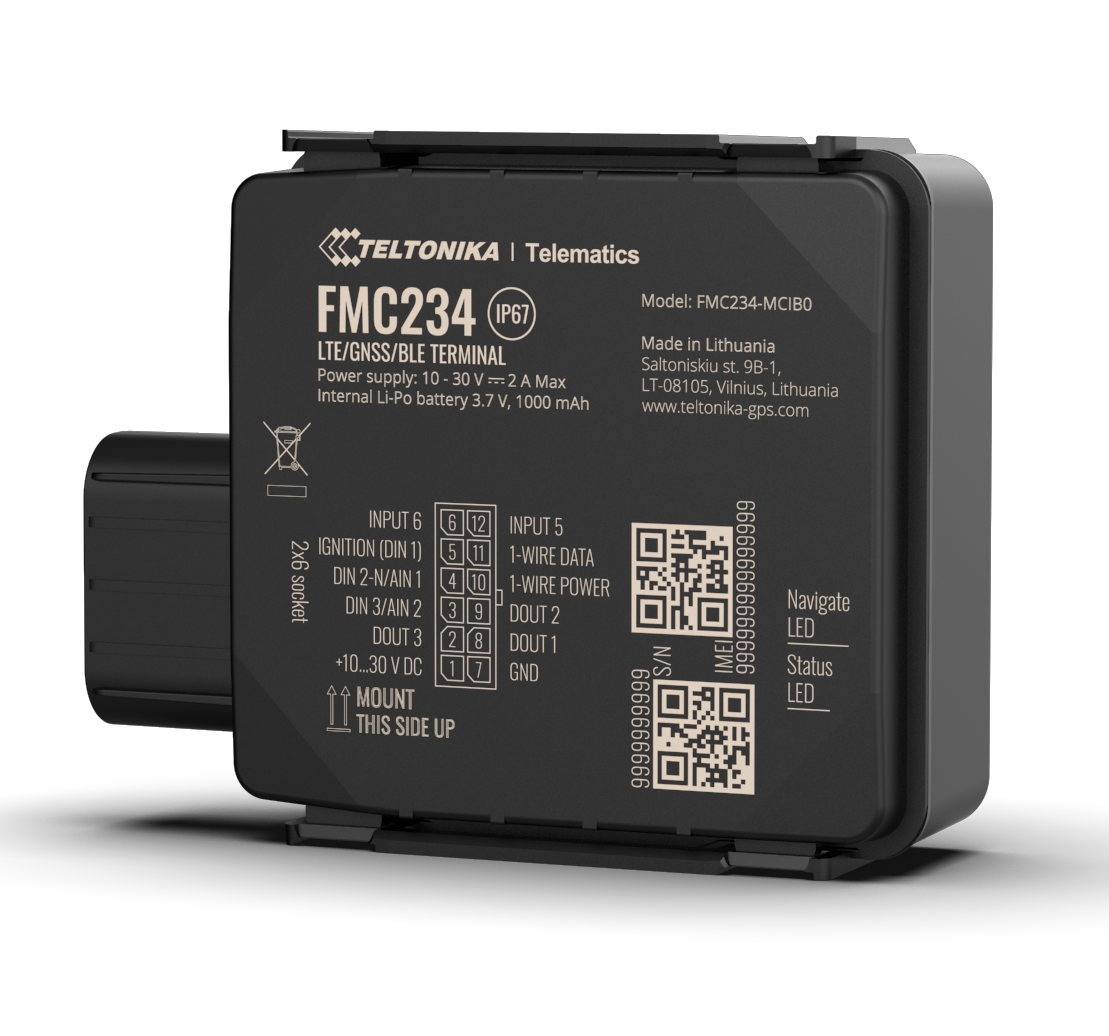 Teltonika FMC234 is a versatile 4G LTE vehicle tracker with an IP67-rated casing for dust and water resistance. It includes a 1000 mAh Li-Po backup battery, internal GNSS, LTE antennas, Bluetooth connectivity, and support for multiple input/output configurations. The device is suitable for insurance telematics, trailer tracking, stolen vehicle recovery, and construction vehicle monitoring. Additional features include Impulse Input for accurate fuel monitoring, accelerometer for movement detection, and support for FOTA web and mobile configuration.