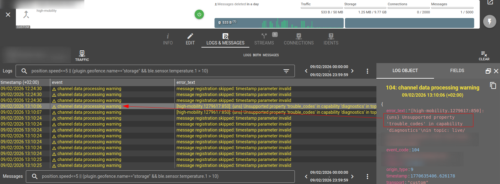 flespi supports new message parameters on demand. If you have successfully set up data flow and see warning logs like these - please contact flespi team and we'll add them to the parsing scheme.