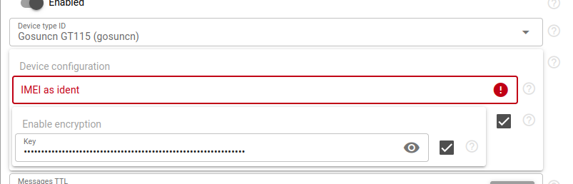 By default uses aes-256-ecb encryption. The key must be specified in device configuration.